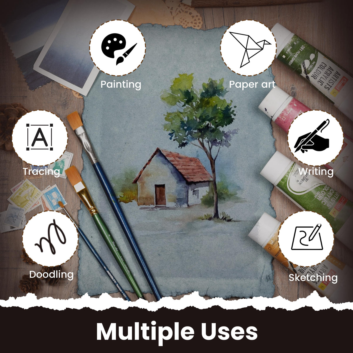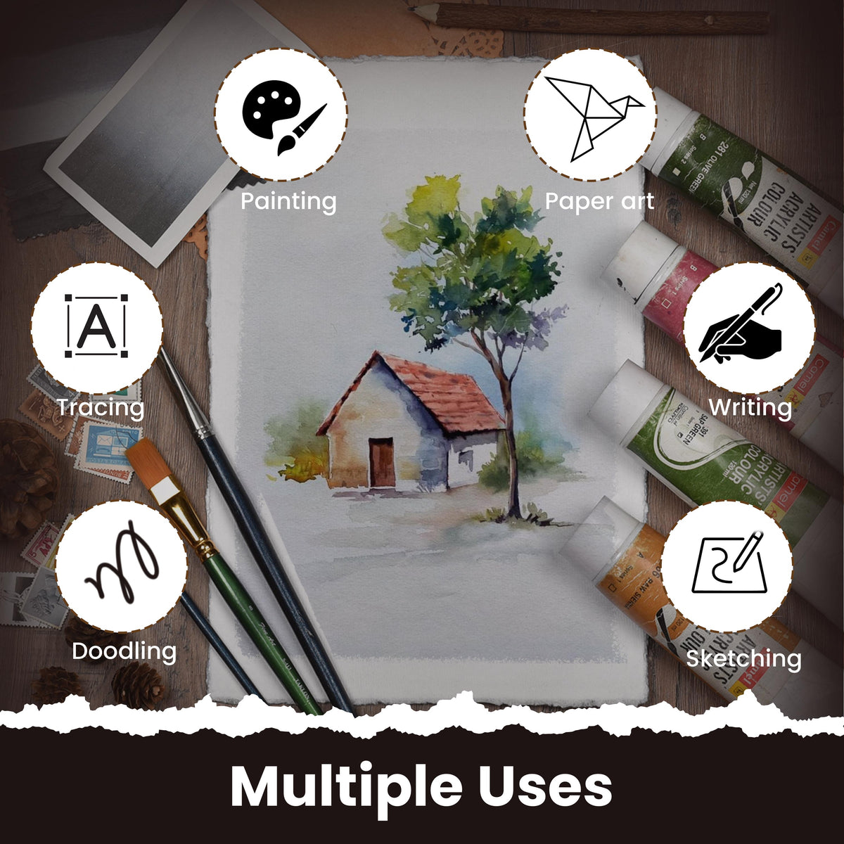THICK 150 GSM HANDMADE ACID-FREE PAPER: These ancient-looking virgin vintage cotton papers are crafted by our artisans. Hands down your beautiful piece of art on a vintage thick, textured, and durable paper.