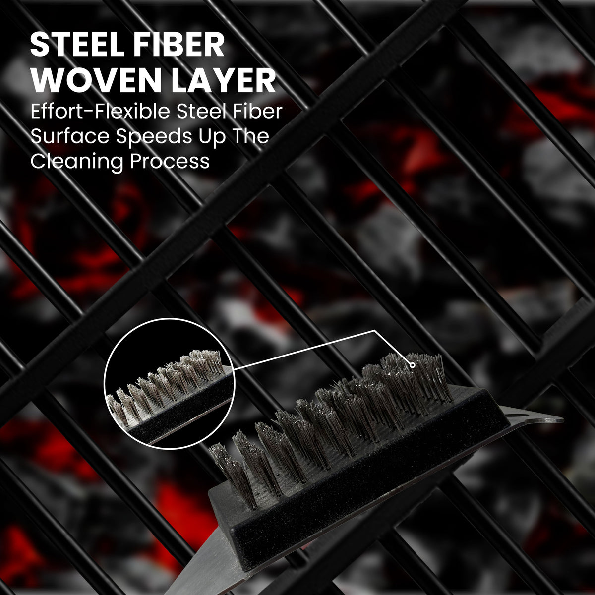 Grill Brush and Scraper for Barbecue with Replaceable Stainless Steel Bristles Head – Grill Brush for Outdoor Grill with Extended 15” Large Wooden Handle