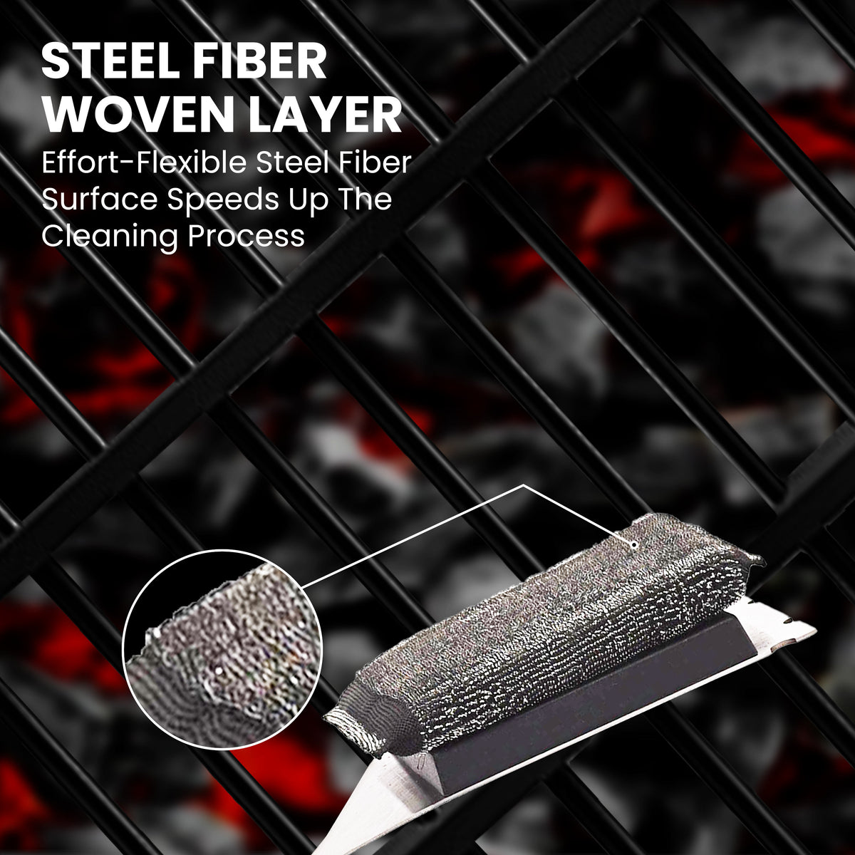 Grill Scrubber and Scraper for Barbecue with Replaceable Scrubber Head – Grill Cleaner for Outdoor Grill with Extended 16” Large Wooden Handle