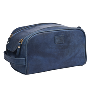 This blue leather toiletry bag is designed for simple, everyday travel. Made from genuine, cruelty-free leather, it offers a compact shape that fits easily into carry-ons or gym bags while keeping grooming essentials neatly organized. The magnetic closure allows quick access, and the waterproof interior lining helps protect against spills. Clean, practical, and timeless—this is a leather grooming bag made to be used daily.
