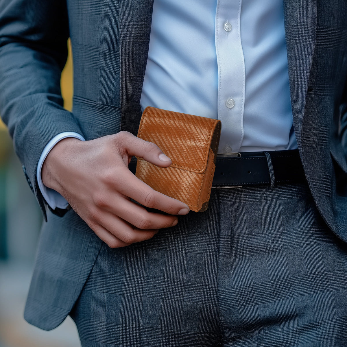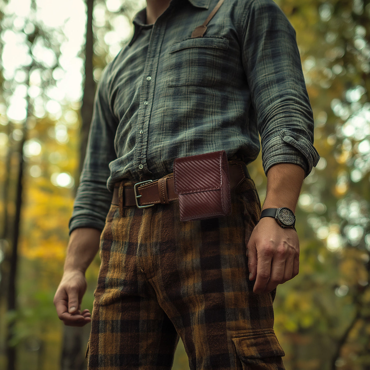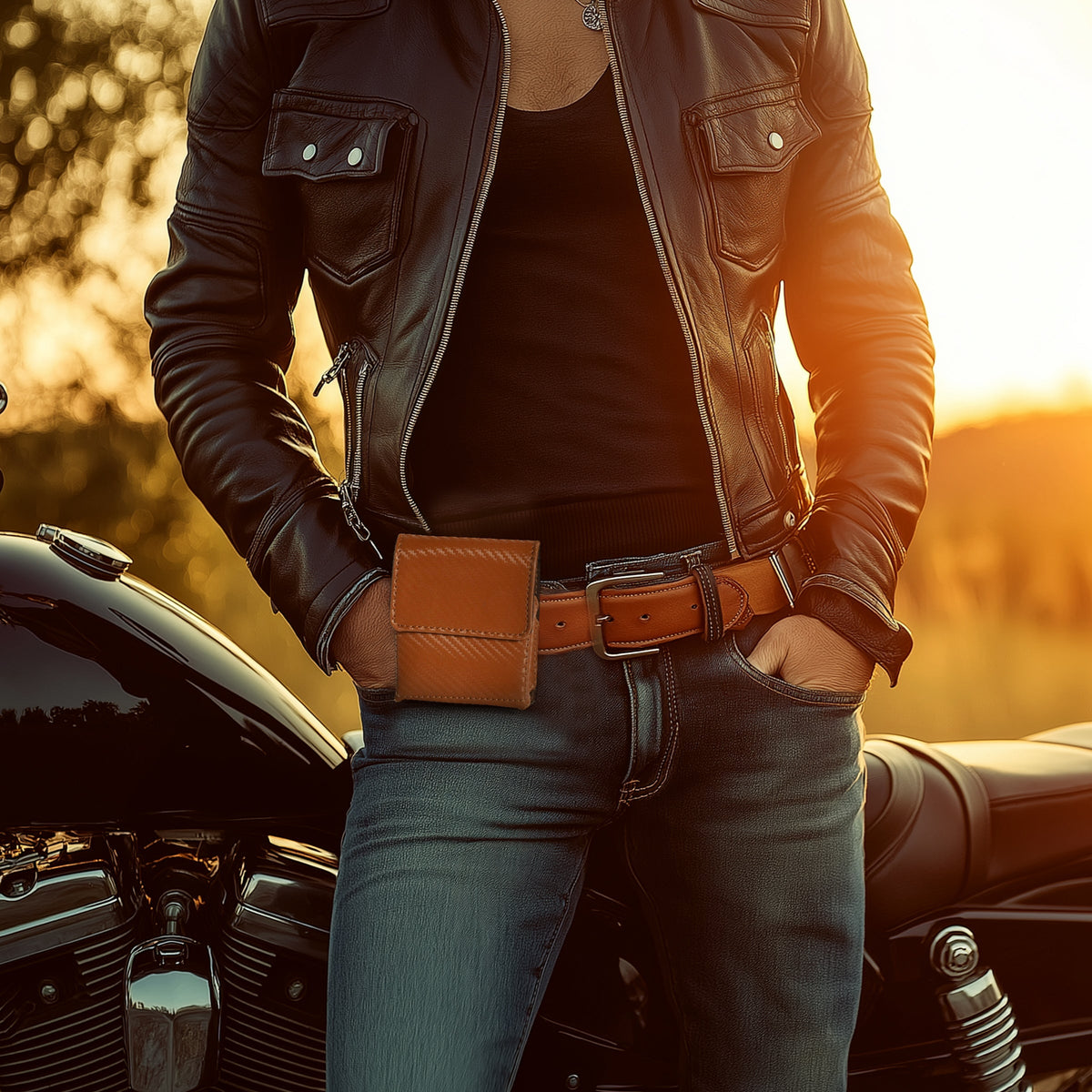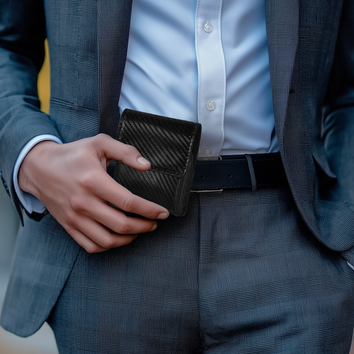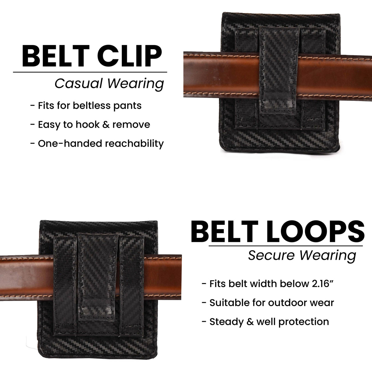 Carbon Fiber Genuine Leather Flip Phone Holster with Belt Clip Universal Cell Phone Pouch for Samsung Galaxy Z Flip 6/Z 5/ Galaxy Z 4/ Z 3 5G/ Motorola Moto Razr 2024 - Black