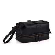 Genuine Leather Toiletry Bag for Men & Women - Mens Toiletry Shower Organizer Dopp Kit , Pouch for Traveling - Black