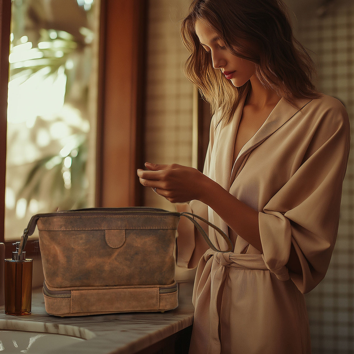 • Premium Craftsmanship: Handcrafted from genuine leather, this toiletry bag offers unmatched durability and a sophisticated, luxurious appeal. Its high-quality materials ensure long-lasting performance for years to come.