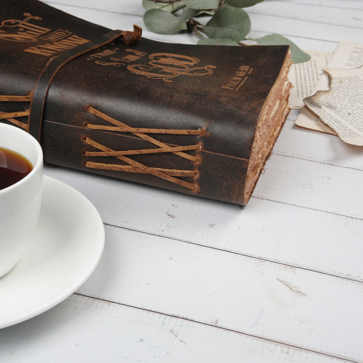 Inform when this item available PSALM 46v10 EMBOSSED BIBLE VERSE - LEATHER JOURNAL