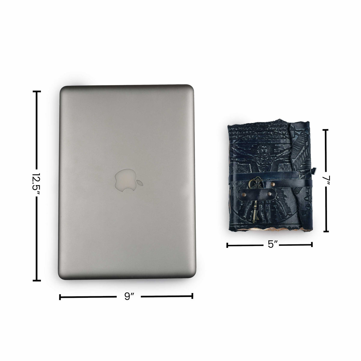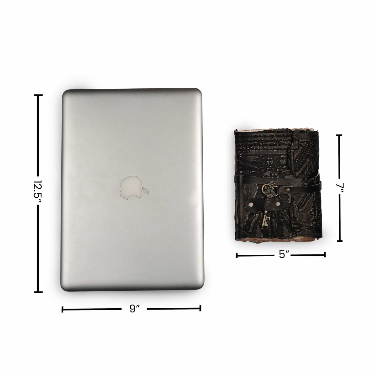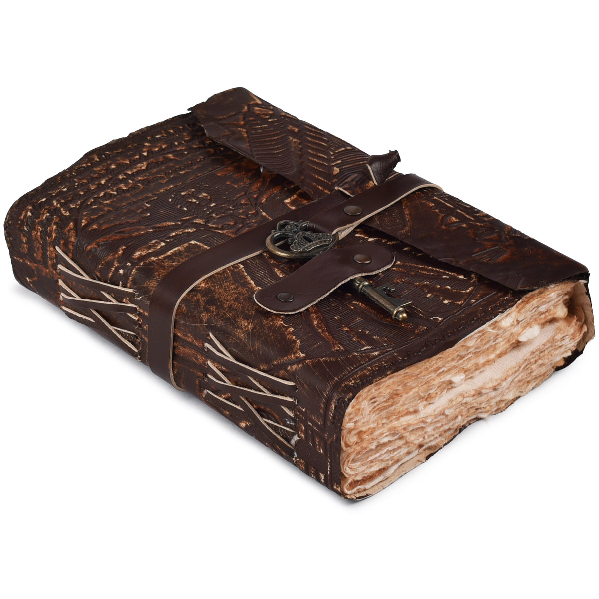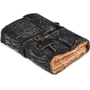 Genuine Leather Handmade Journal for Men & Women- Key Closure-Handmade Embossed Journal- 7x5 Inches- Black - Black