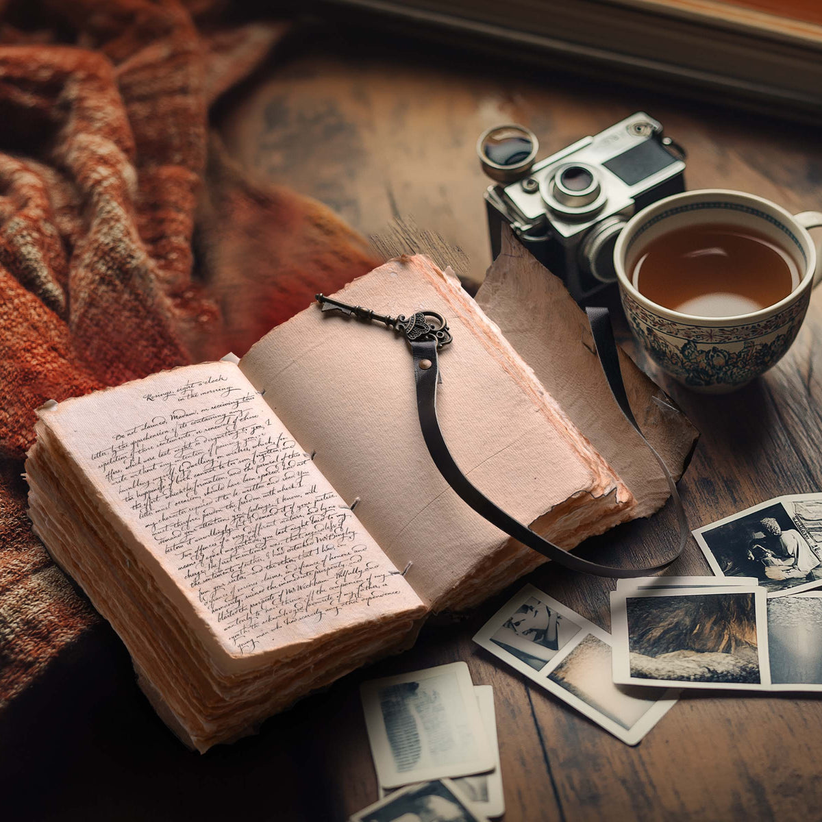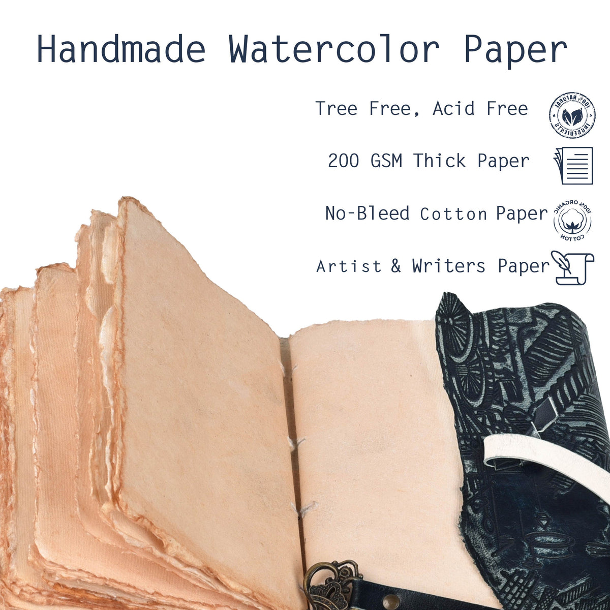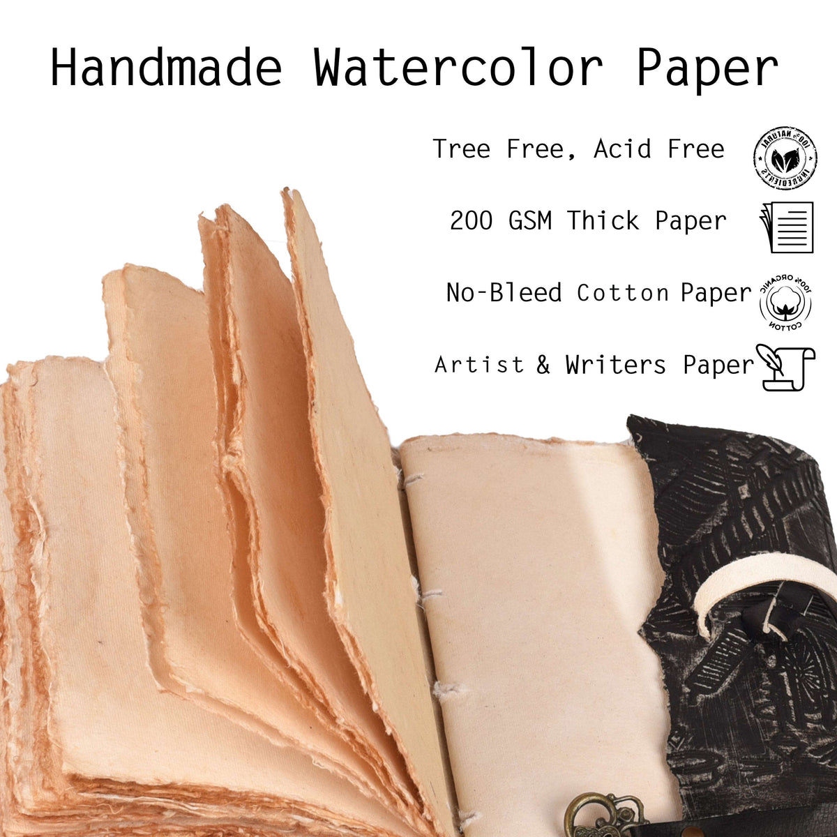 Genuine Leather Handmade Journal for Men & Women- Key Closure-Handmade Embossed Journal- 7x5 Inches- Black - Black
