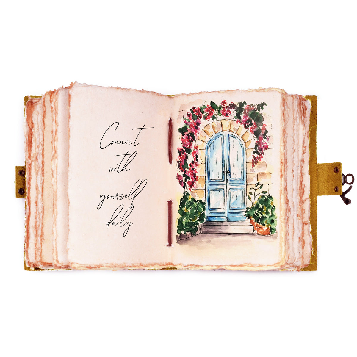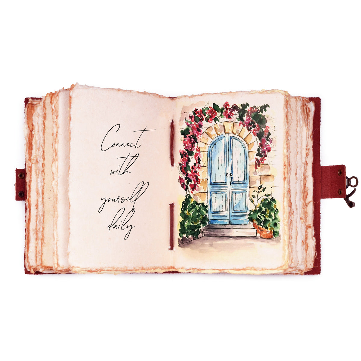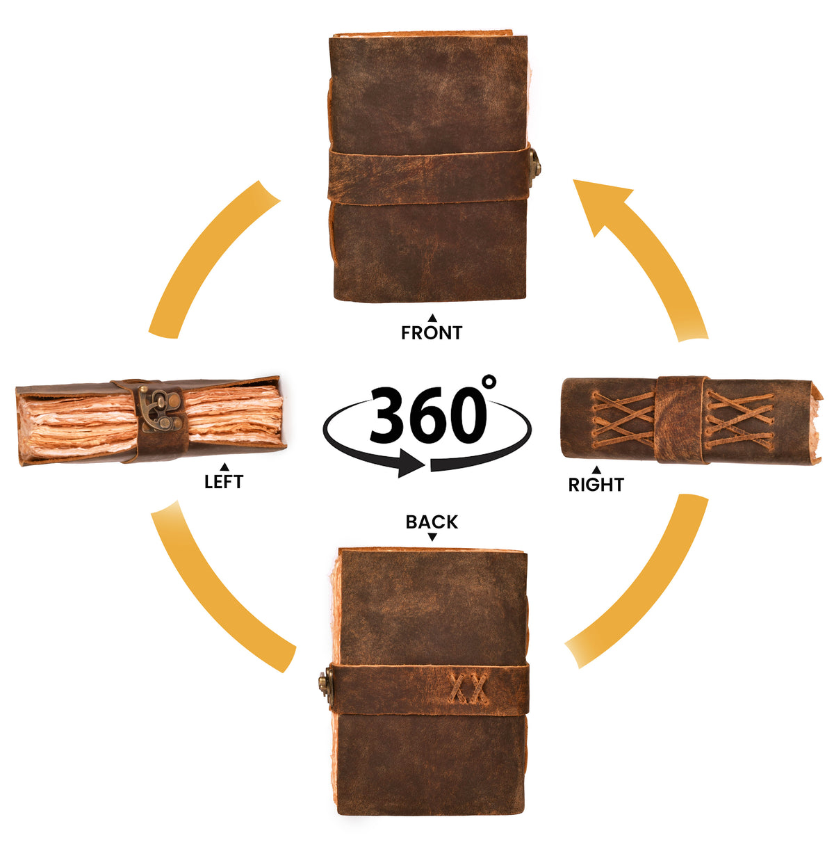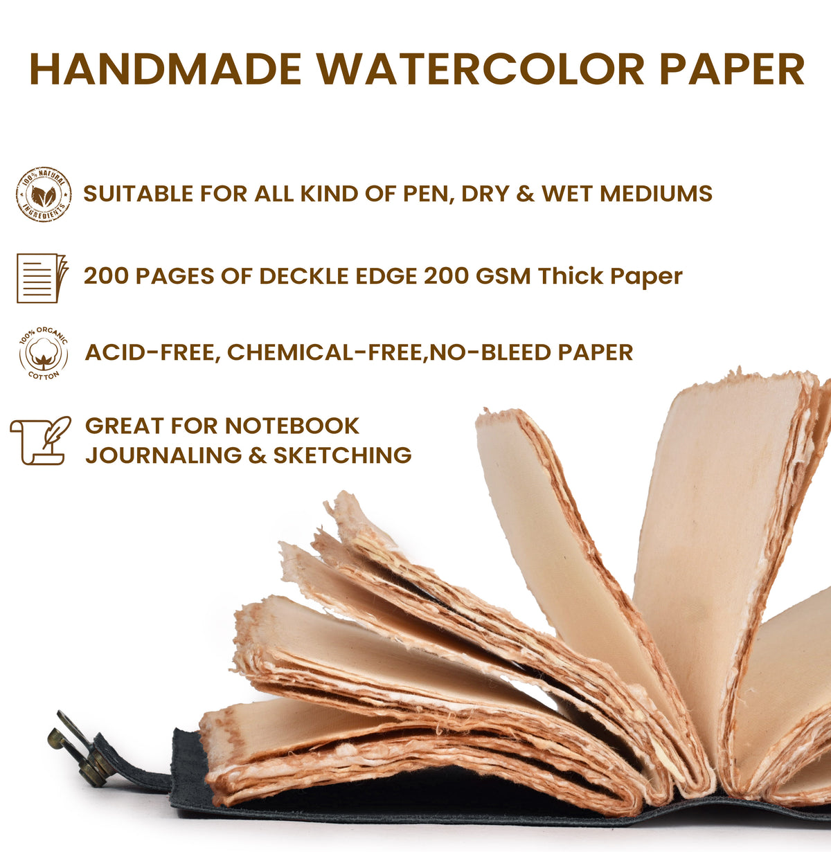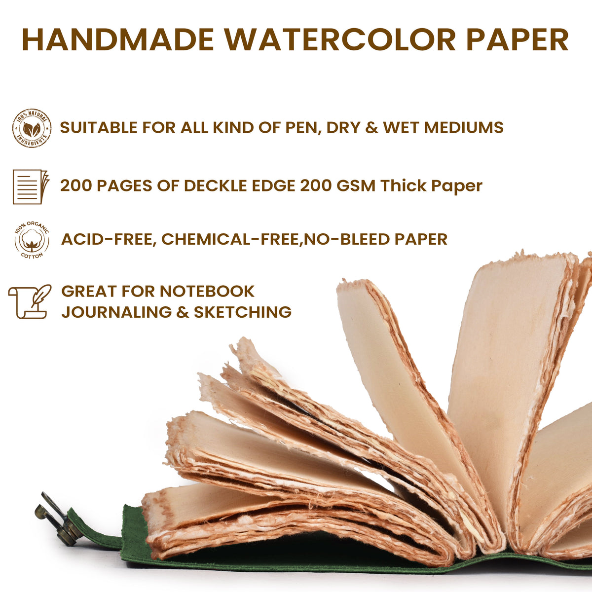 Leather Bound Vintage Journal for Women & Men - Book of Shadows - Lock Closure - 200 Pages of Antique Deckle Edges Handmade Paper - 7"x5" / Brown