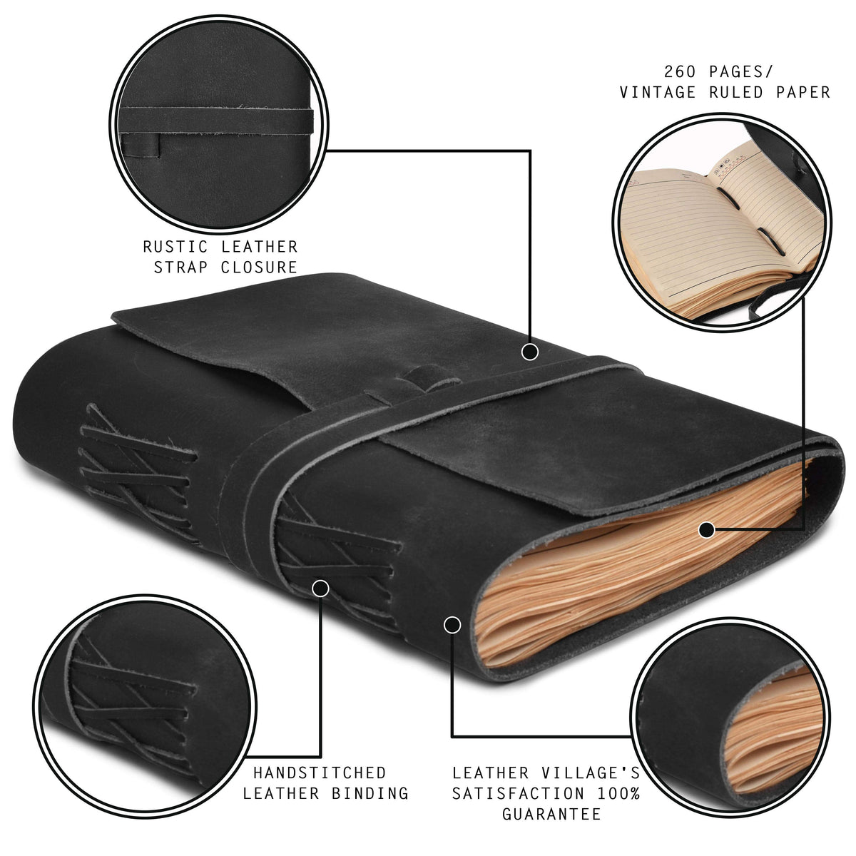 Handmade Vintage Leather Journal: The Leather Village journal features a meticulously crafted distressed brown leather cover that exudes a classic and timeless charm. It lays flat for easy use and is perfect for daily use, traveling, and busy schedules.