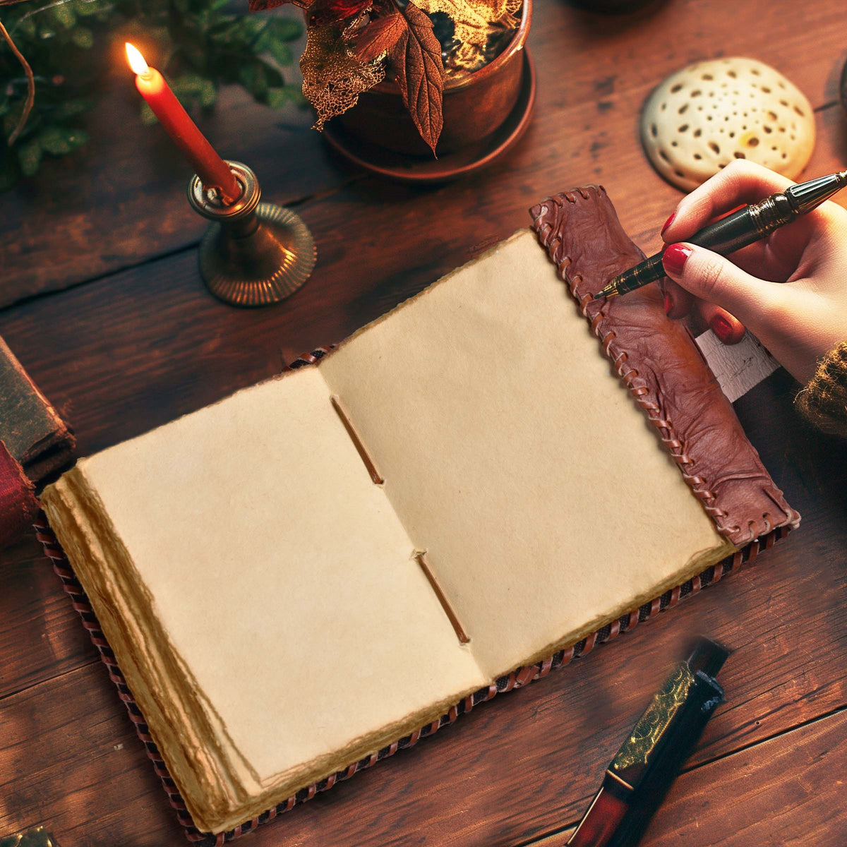 Vintage Spell Book Leather Bound Journal - 7”X5” | 200 Pages |Red Brown| Blank Deckle Edges Watercolor Paper | Writing Notebook | Book Of shadow - Brown / 7"X5"