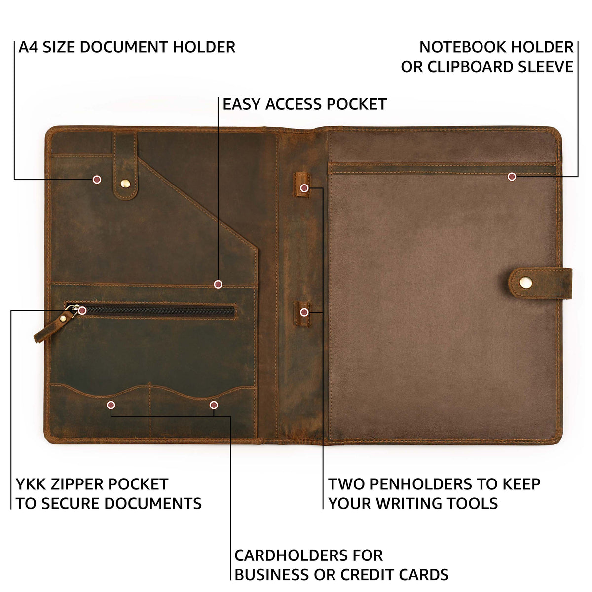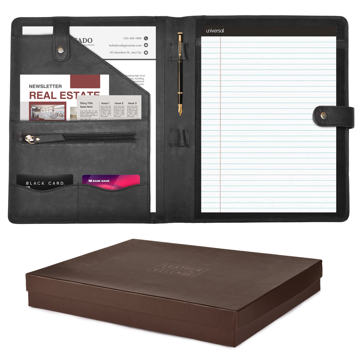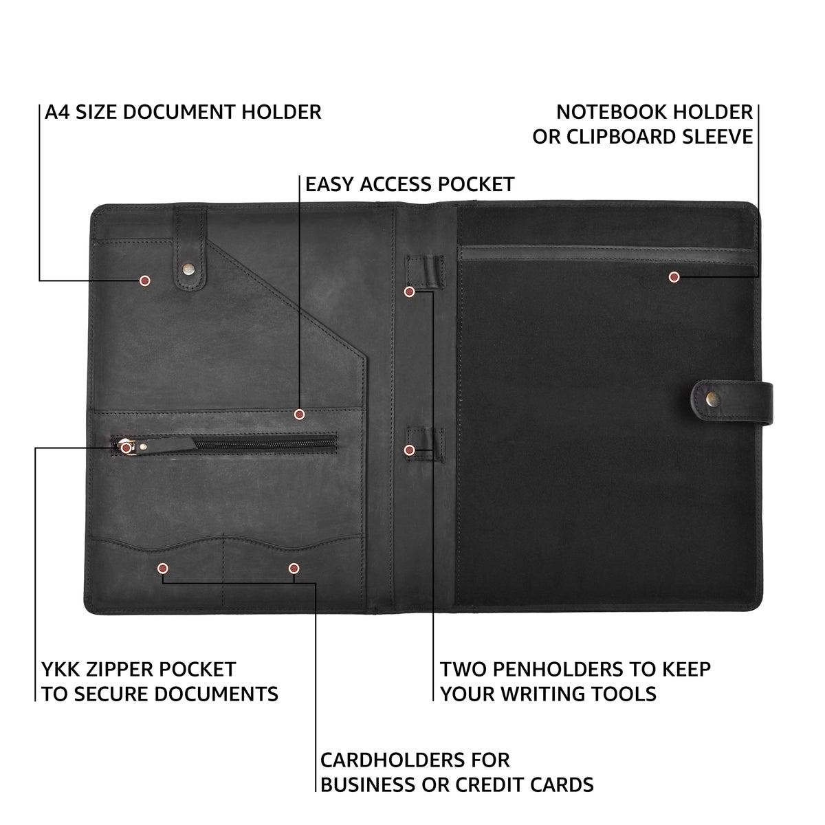 Leather Portfolio & Binder Leather Portfolio for Men and Women, Leather Padfolio, Leather Folder, Portfolio Binder, Business Portfolio Men and Women - Black