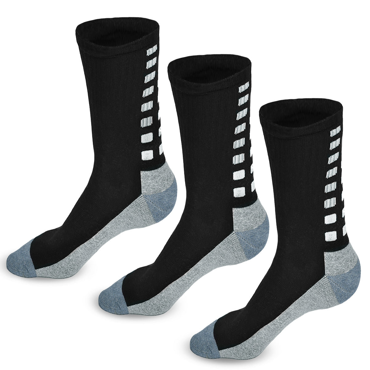 Grip Socks - Non-Slip Cushioned Comfort, Arch Support, Moisture-Wicking Running Socks for Men & Women Pack of 3 - Black / Medium