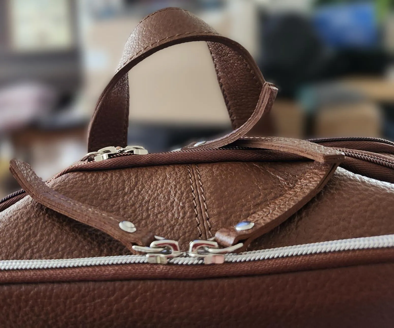 Black Leather Laptop Backpack for Work & Travel